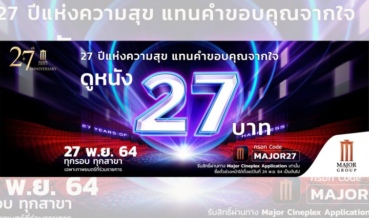 ฉลองครบรอบ 27 ปี เมเจอร์ ซีนีเพล็กซ์ ชมภาพยนตร์ราคาเพียง 27 บาท วันที่ 27 พฤศจิกายนนี้เท่านั้น