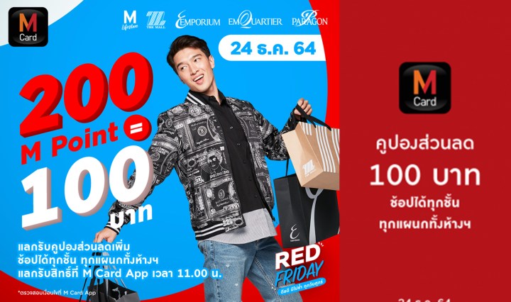 เดอะมอลล์ RED FRIDAY แลก 200 M Point รับส่วนลด 100 บาท 24 ธ.ค. 64 เท่านั้น
