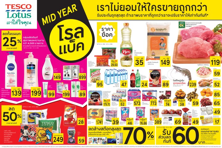รับส่วนลดทันที 60 บาท เมื่อซื้อสินค้าแผนกอาหารสดครบ 600 บาท/ใบเสร็จ สินค้าแผนกอาหารสด ได้แก่ เนื้อสัตว์, อาหารทะเล, ไข่, ผักผลไม้, เบเกอรี, อาหารพร้อมทาน, อาหารแช่แข็ง, นมพาสเจอร์ไรส์, โยเกิร์ต และสินค้าในตู้แช่ (ไม่ร่วมรายการที่เทสโก้โลตัส เอ็กซ์เพรส)