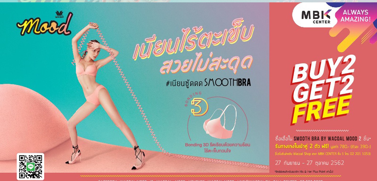 MBK Center ร่วมกับ Wacoal Mood จัดดีลสุด Exclusive ซื้อ 2 แถม 2 !! ที่ Wacoal shop สาขา MBK Center ที่เดียวเท่านั้น !!