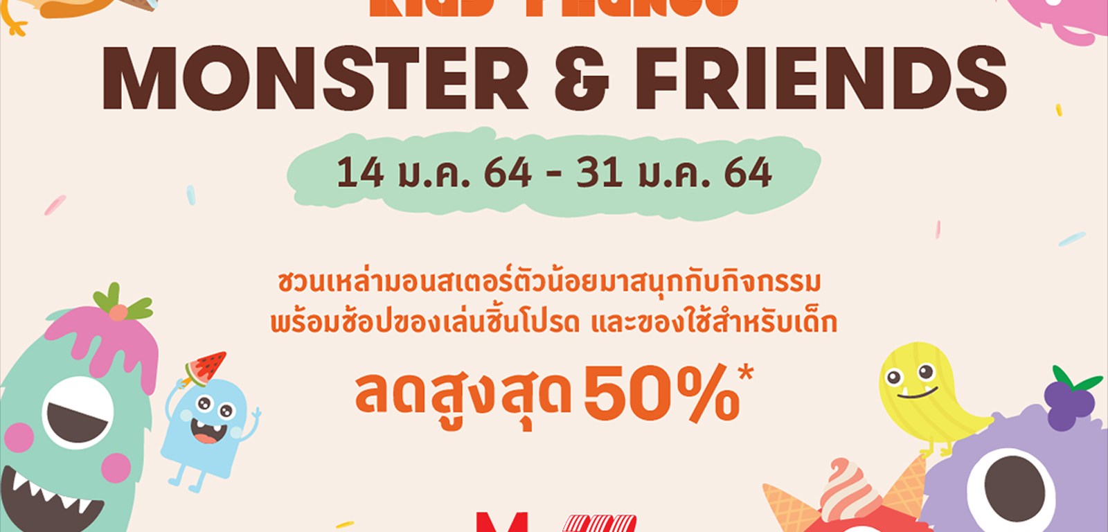 ‘มกราคม’ เดือนนี้ต้องยกให้เด็กๆ นะคะ คุณพ่อคุณแม่สายช้อปต้องเบรกตัวเองแล้วมาเลือกสินค้าสำหรับน้องๆ ในงาน Kids’ Planet Monster & Friends ของเล่น และของใช้เด็ก ลดสูงสุด 50%* ที่ เดอะมอลล์ทุกสาขา