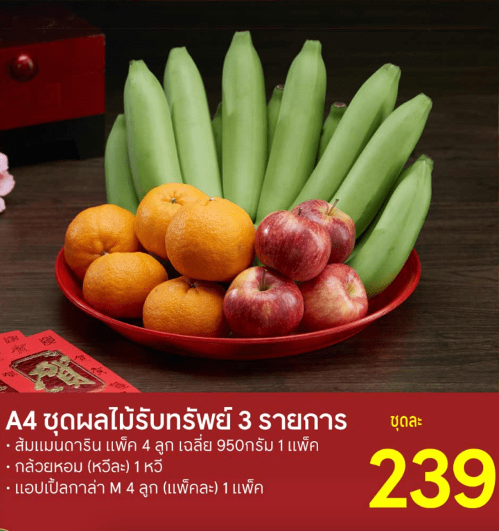 - A4 ชุดผลไม้รับทรัพท์ 3 รายการ ชุดละ 239 บาท