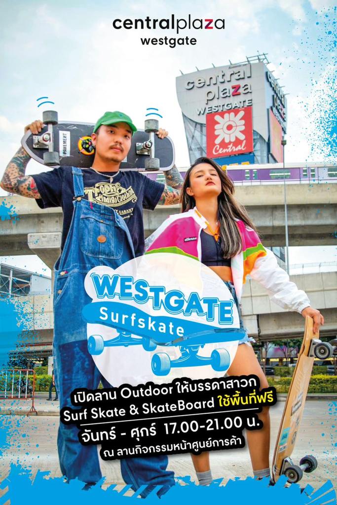 ข้ามไปฝั่งตะวันตกกันบ้าง เซ็นทรัล พลาซ่า เวสเกต ก็เอาใจชาวแก๊งเช่นกัน เปิด WESTGATE SURFSKATE ซึ่งเป็นลาน Outdoor ให้เล่นได้ทั้งสเก็ตบอร์ดหรือเซิร์ฟสเก็ตกันเลยค่ะ แถมยังสะดวกสบายมีทั้งที่จอดรถ ห้องน้ำ และแจกฟรีน้ำดื่ม พื้นที่กว้างใหญ่ไถได้เพลินสุดๆ