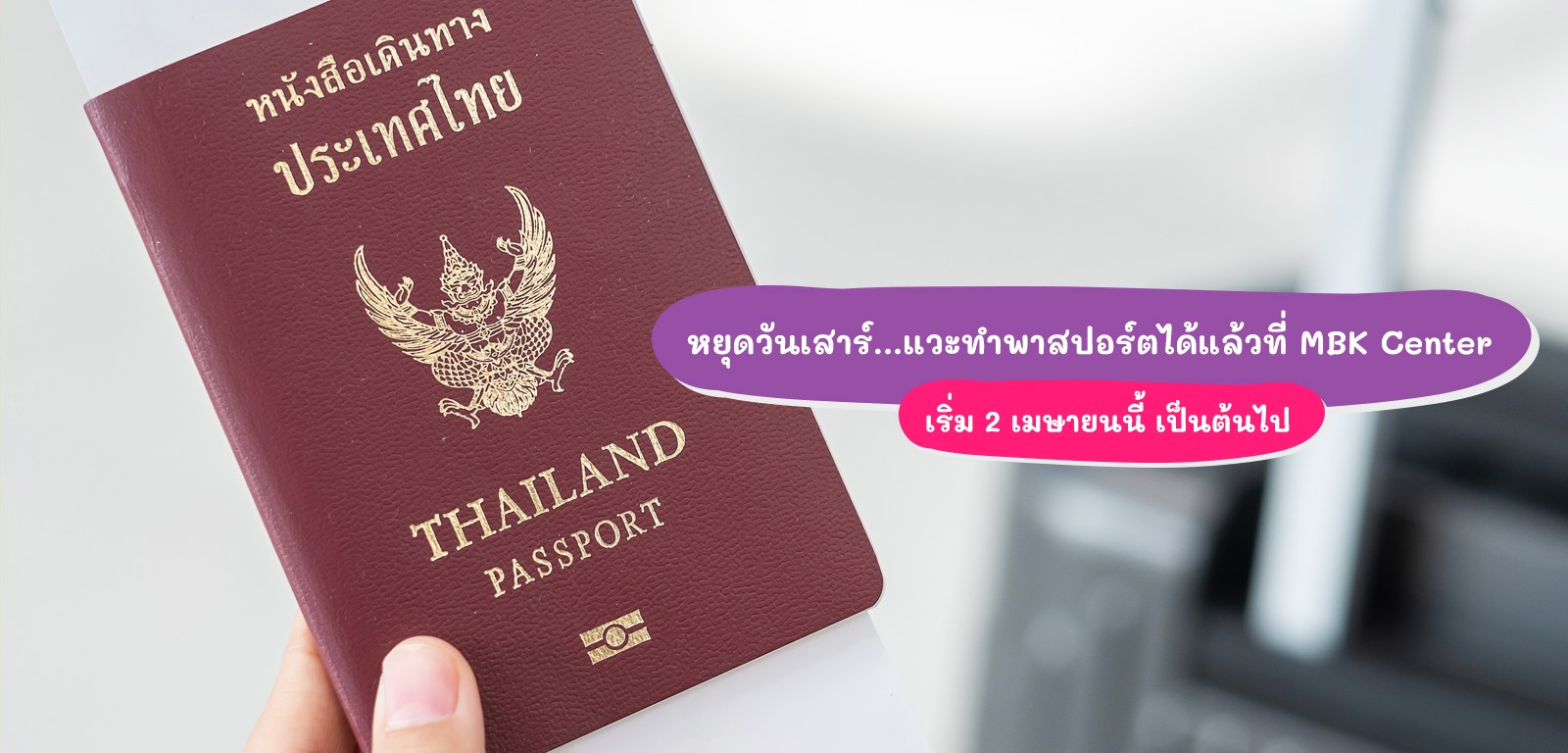 ข่าวดีสำหรับผู้ที่ต้องการทำพาสปอร์ตแต่ไม่สะดวกเดินทางไปทำในวันธรรมดา สำนักงานหนังสือเดินทางชั่วคราว ปทุมวัน MBK Center อำนวยความสะดวกให้กับประชาชนเพิ่มเติมจากปกติให้บริการในวันจันทร์ – วันศุกร์ ซึ่งจะเริ่มให้บริการในวันเสาร์ ตั้งแต่วันที่ 2 เมษายนนี้เป็นต้นไปที่ MBK Center ชั้น 5 โซน A พร้อมให้บริการทั้งแบบตู้ทำพาสปอร์ตอัตโนมัติ (Kiosk) และบูธปกติ ตั้งแต่เวลา 10.00 น. – 18.00 น.